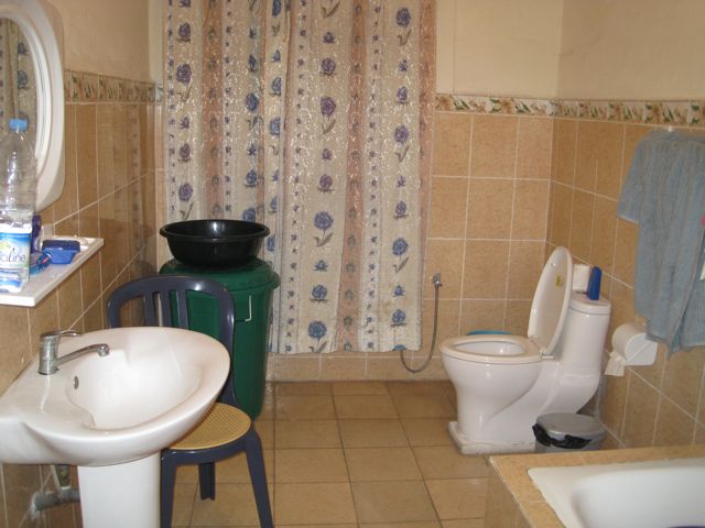 bathroom 1 Published September 5, 2012 at 640 × 480 in Two packages in one week…priceless! Bathroom with water bucket reserve (for when the water goes out…)