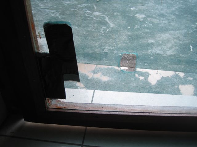 We thought the first hole was just an “accident” with the mop…but after we taped it with duct tape and the 2nd one showed up, we figured out it was something chewing its way in each night…